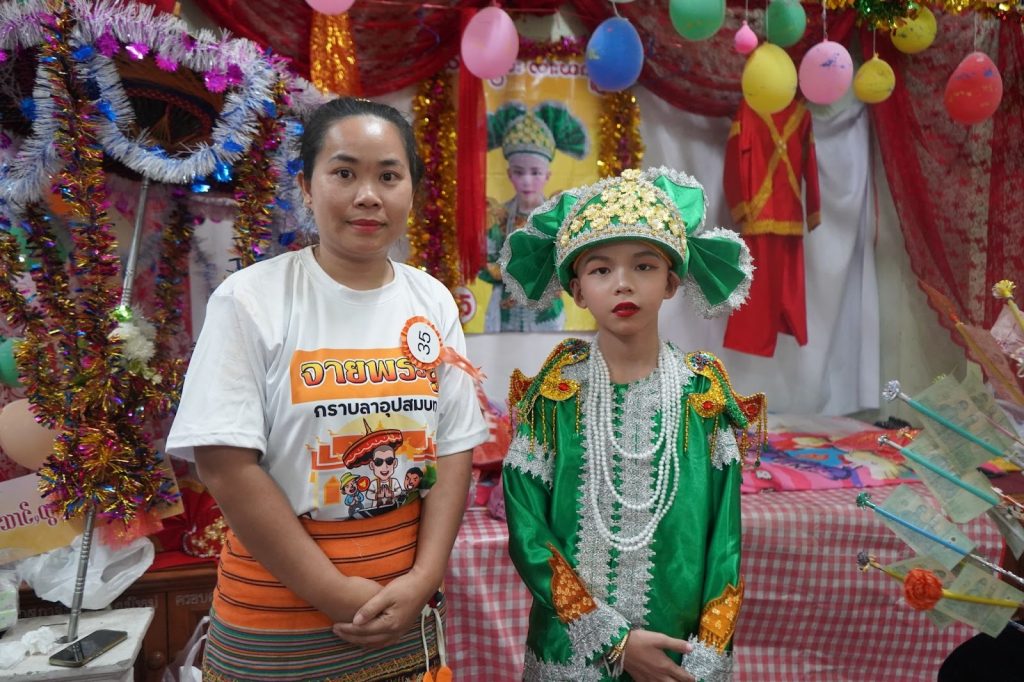 อ้อมใจ หนึ่งในญาติของส่างลองที่มาร่วมช่วยงานในพิธิ เล่าว่า แม้เธอจะไม่มีลูกชาย แต่ยังคงมีบทบาทในฐานะญาติ ผู้ร่วมขบวน และผู้เป็นส่วนหนึ่งของช่วงเวลาแห่งความหมายนี้