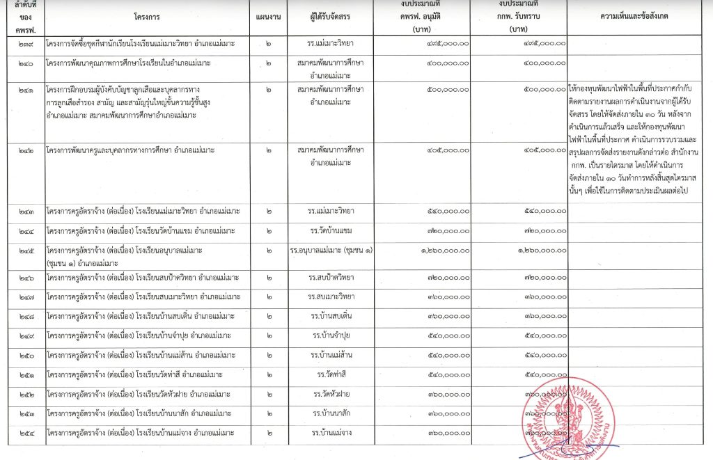 • โครงการปรับปรุงโรงเรียน ห้องน้ำ ห้องสมุด และจ้างครูพี่เลี้ยงชั่วคราวอีกนับร้อยรายการ