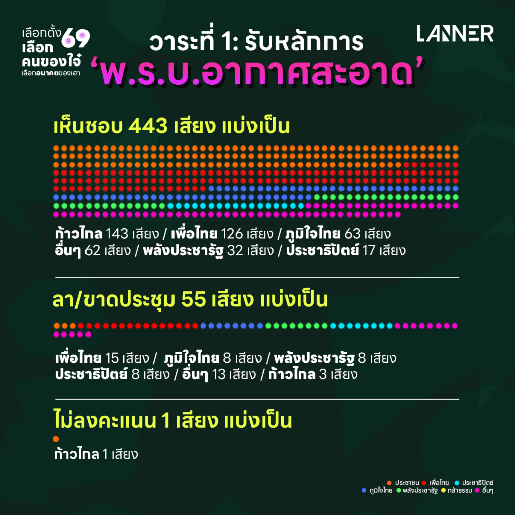 ที่มา: ผลการลงมติ ร่าง พ.ร.บ. บริหารจัดการเพื่ออากาศสะอาด พ.ศ. … วาระที่ 1