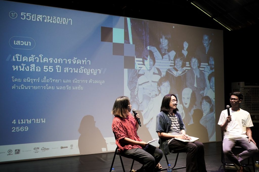 ส่วนหนึ่งของกิจกรรมที่เกิดขึ้นในวันนั้น มีการเปิดตัวโครงการจัดทำหนังสือ ‘55 ปี สวนอัญญา’ ไม่เพียงเป็นการรำลึกถึงอดีต หากยังชักชวนผู้คนเดินทางผ่านเวลามาทบทวนความหมายและหน้าที่ของสวนอัญญา ผ่านความทรงจำที่เคยฝากชีวิต บันทึกลงบนผืนดิน และต่อยอดไปสู่การจัดทำเป็นหนังสือที่รวบรวม 55 เรื่องเล่า จาก 55 ผู้เล่า เพื่อบันทึกประวัติศาสตร์ความทรงจำ และตั้งคำถามถึงอนาคตของพื้นที่แห่งนี้ในสังคมที่เปลี่ยนแปลงไป