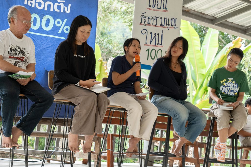 “แม้รัฐธรรมนูญควรปกป้องสิทธิของประชาชน แต่ในวันนี้ชุมชนยังไม่มีพื้นที่ตัดสินใจอย่างแท้จริง” เธอกล่าว พร้อมเสนอให้รัฐธรรมนูญใหม่ระบุสิทธิชุมชน ไว้อย่างชัดเจน และให้ถอด ‘ยุทธศาสตร์ชาติ 20 ปี’ ออกจากรัฐธรรมนูญ เพราะเป็นกรอบที่ประชาชนไม่ได้มีส่วนร่วม แต่มีผลผูกมัดอนาคตของพื้นที่