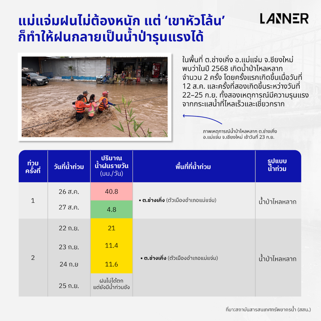 แม่แจ่มฝนไม่ต้องหนัก แต่ ‘เขาหัวโล้น’ ก็ทำให้ฝนกลายเป็นน้ำป่ารุนแรงได้