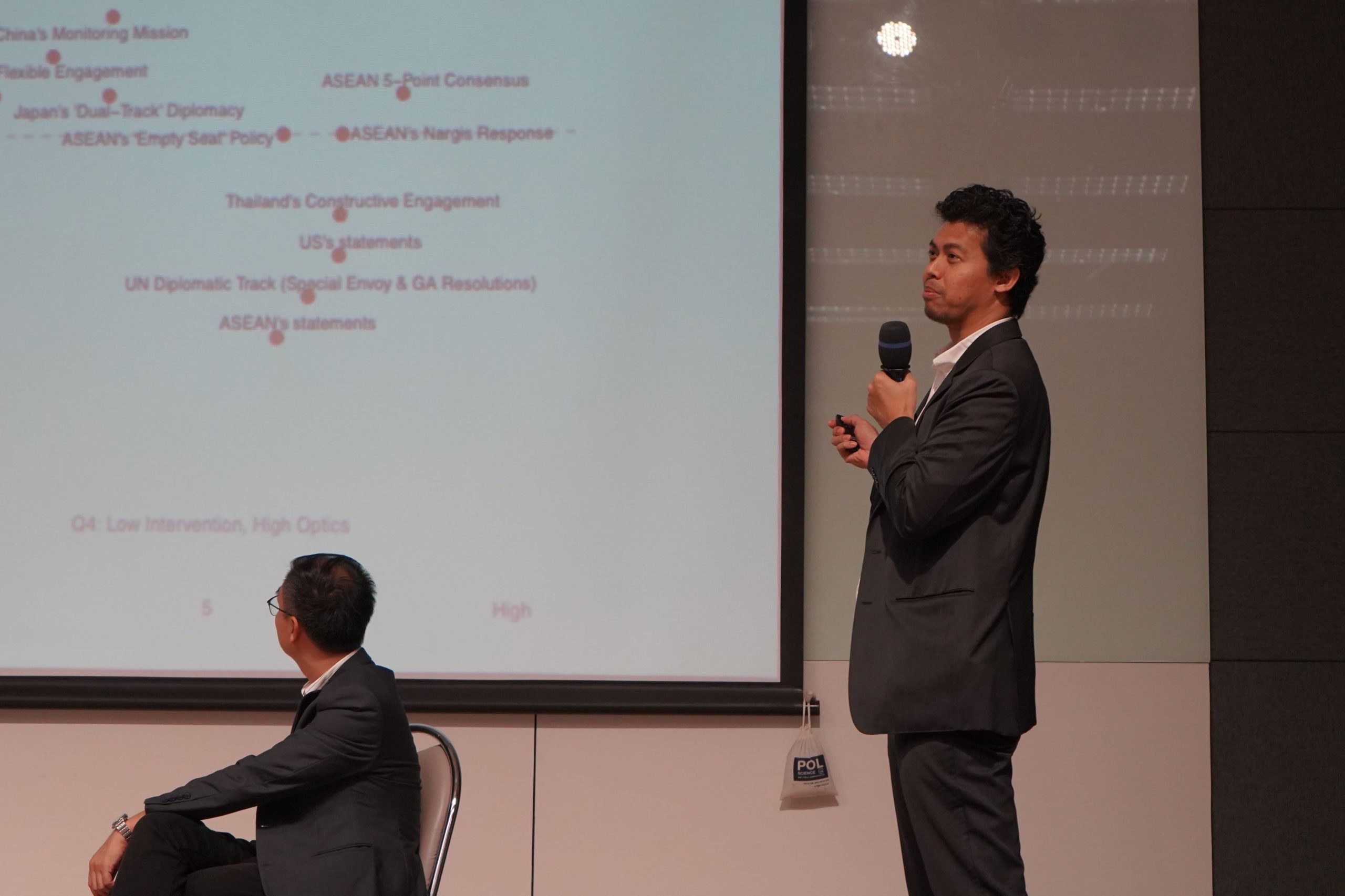 นอกจากนี้ เขายังนำเสนอการพิจารณาท่าทีที่นานาชาติมีต่อการเลือกตั้งภายใต้รัฐบาลทหารเมียนมา ซึ่งแบ่งออกเป็น 4 ลักษณะ ได้แก่