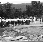 (ภาพ: ล้านนาในอดีต /รูปคณาจารย์และนักศึกษา ร่วมกันประกอบพิธีตั้งศาลพระภูมิประจำมหาวิทยาลัยเชียงใหม่)
