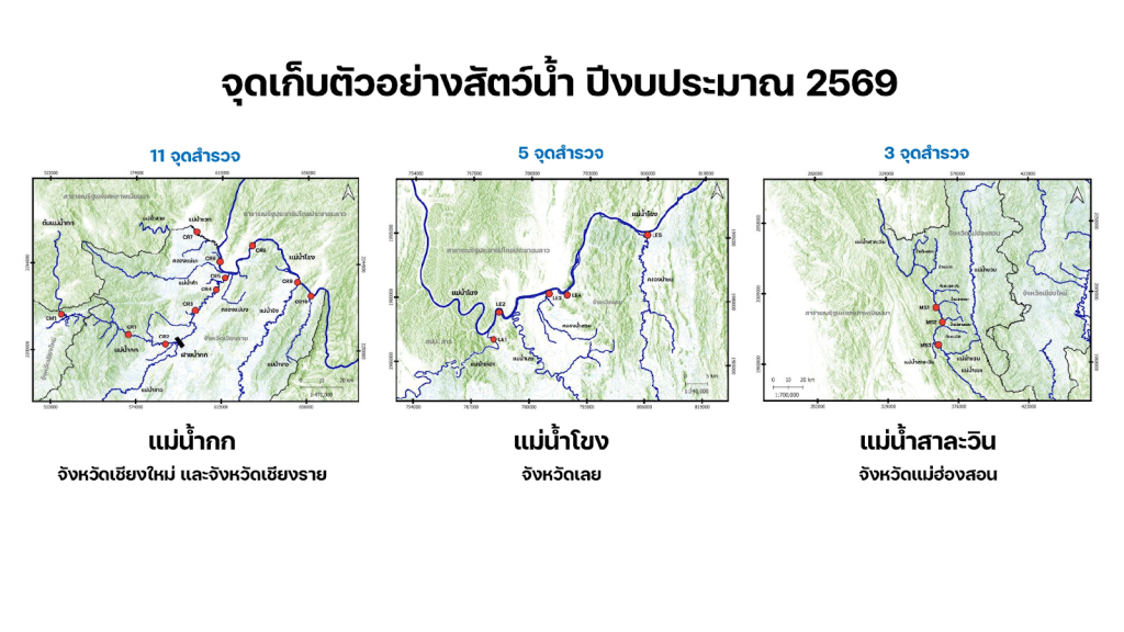 ในเชิงการดำเนินงาน มีการวางแผนตรวจสอบรวม 19 จุด ได้แก่ แม่น้ำกก 11 จุด แม่น้ำสาละวิน 3 จุด และแม่น้ำโขง 5 จุด
