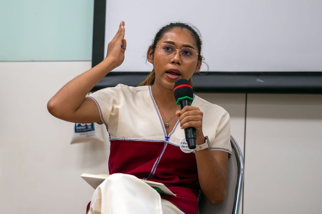 ขณะที่ พรชิตา ฟ้าประทานไพร เยาวชนผู้ต่อสู้เพื่อสิทธิชนเผ่าพื้นเมือง ได้ถ่ายทอดประสบการณ์การคัดค้านโครงการเหมืองถ่านหินบ้านกระเบอะดิน อำเภออมก๋อย จังหวัดเชียงใหม่ โดยชี้ว่าชุมชนไม่เคยได้รับข้อมูลอย่างชัดเจนเกี่ยวกับผลกระทบของโครงการ และเมื่อออกมาคัดค้านกลับต้องเผชิญกับการดำเนินคดี จนเกิดบรรยากาศความหวาดกลัวในพื้นที่
