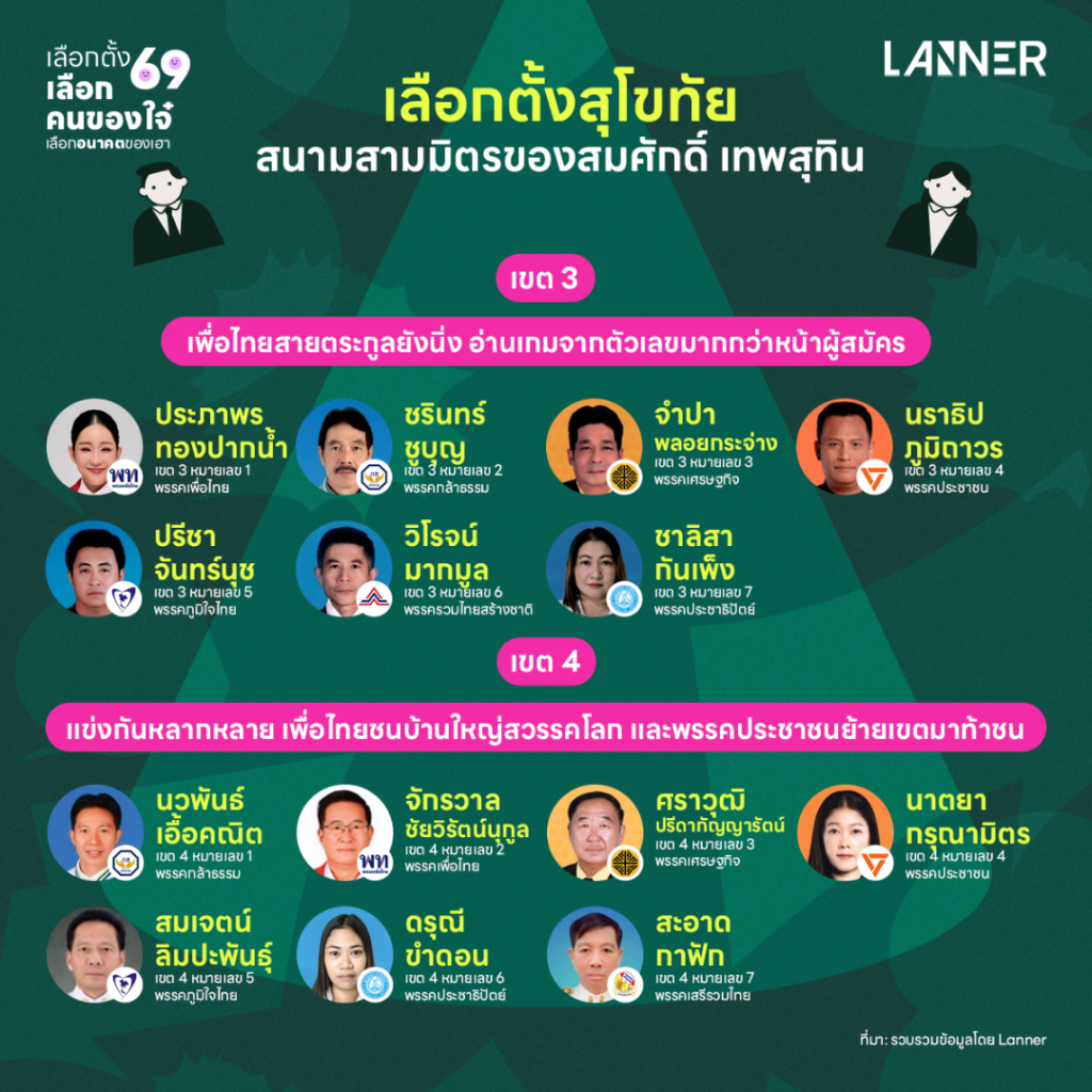 เขต 4 แข่งกันหลากหลาย เพื่อไทยชนบ้านใหญ่สวรรคโลก และพรรคประชาชนย้ายเขตมาท้าชน
